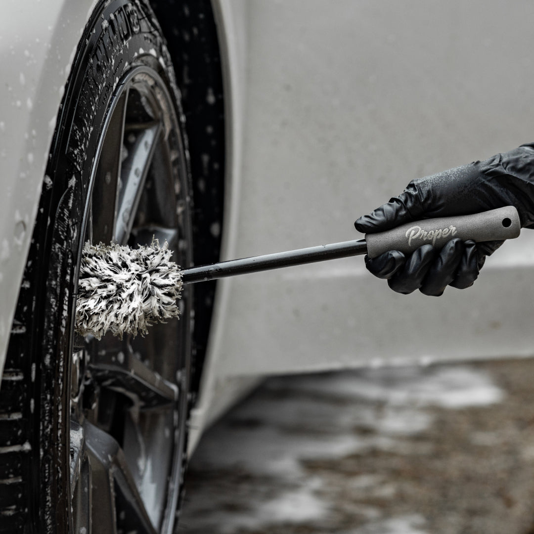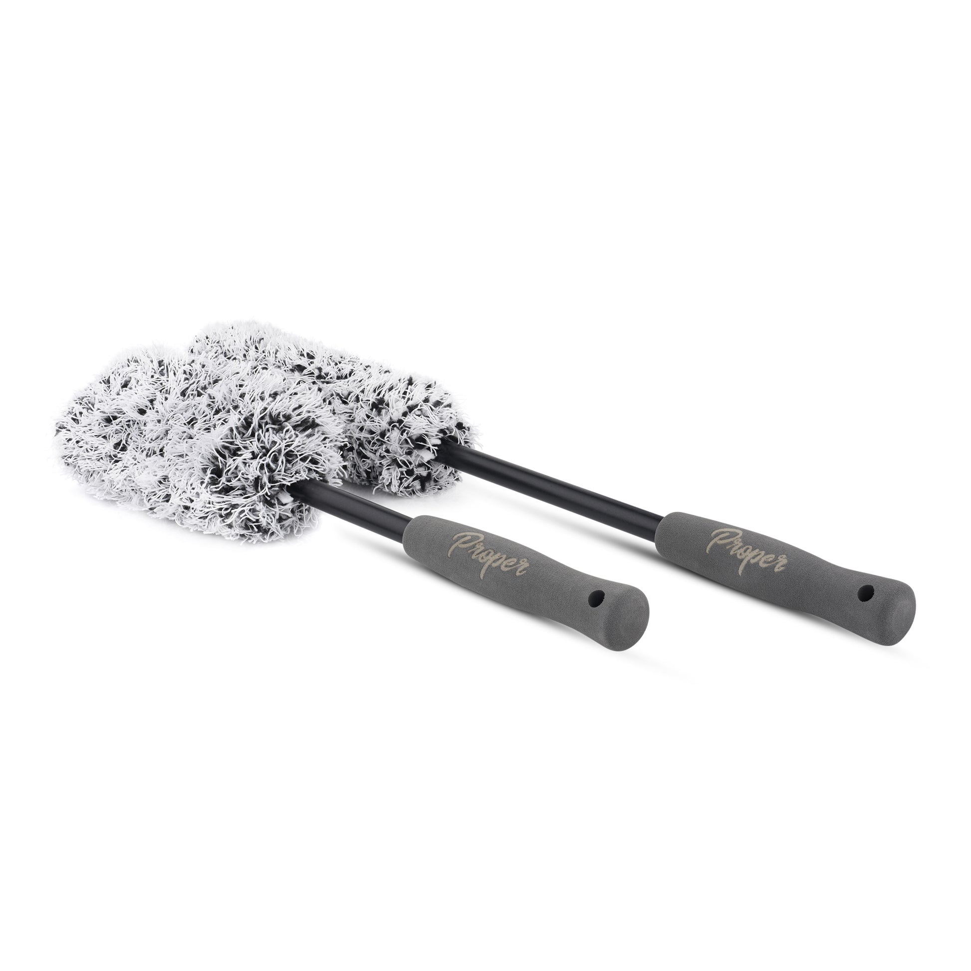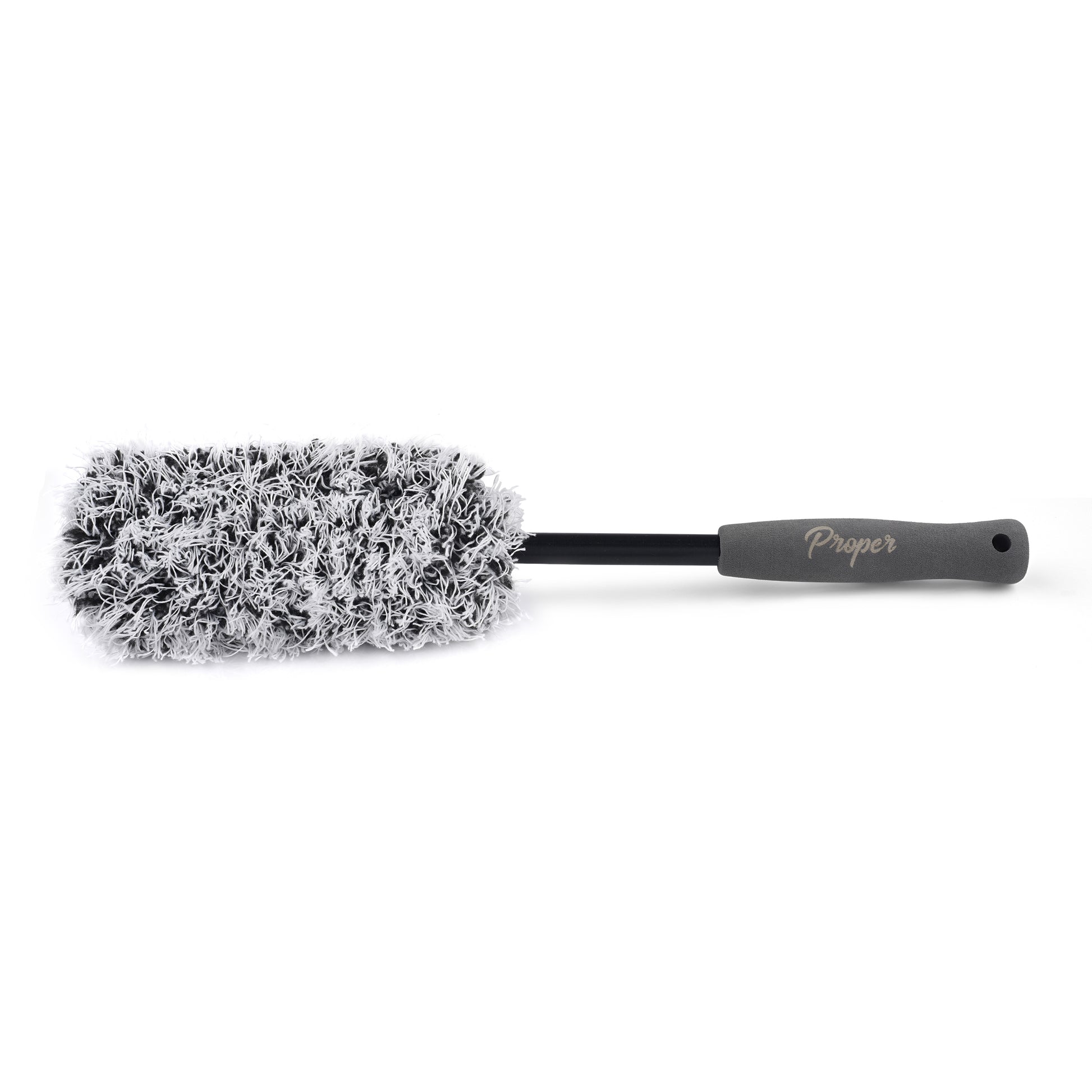 The Wheel Brush Set features a metal-free core and soft microfiber brush head, making it the perfect tool for cleaning and preventing scratches and marring on your car or truck's wheels. This must-have set includes two brushes: an 18" long brush with a rounded head and a 14" brush with a flat head for reaching tight spaces like brake calipers.